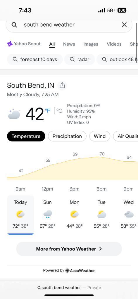 - Attached is the weather forecast for South Bend.