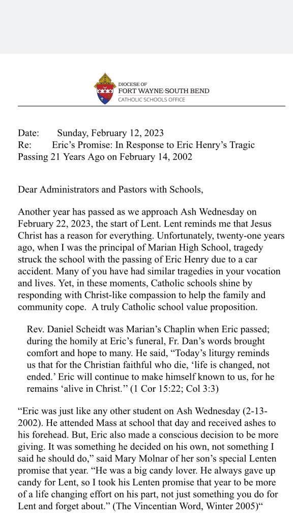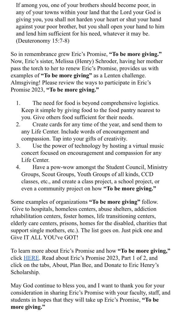'Eric's Promise, to be more giving'
